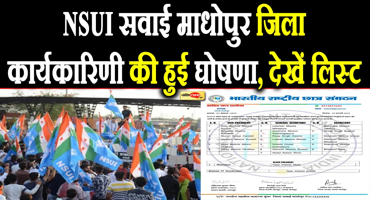 NSUI सवाई माधोपुर जिला कार्यकारिणी की हुई घोषणा, इन युवा नेताओं को दी ये बड़ी जिम्मेदारी 24 Feb 2026 Read More »