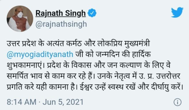 Politalks.News/UttarPradeshPolitics. आज उत्तर प्रदेश के मुख्यमंत्री योगी आदित्यनाथ का जन्मदिन है. ‌इस मौके पर राजनीति के विश्लेषक कई दिनों से प्रधानमंत्री की ओर टकटकी लगाए हुए थे कि योगी के जन्मदिन पर ट्विटर के माध्यम से पीएम मोदी 'क्या बधाई संदेश देंगे'? ‌लेकिन खबर लिखे जाने तक प्रधानमंत्री मोदी ने मुख्यमंत्री योगी आदित्यनाथ को ट्वीट करके शुभकामनाएं नहीं दी है. बता दें कि प्रधानमंत्री मोदी सोशल मीडिया पर बहुत ज्यादा एक्टिव रहते हैं. छोटे-छोटे मुद्दों पर वह हर रोज ट्वीट करते हैं. 'यूपी के मुख्यमंत्री के पद पर रहते हुए योगी का पांचवीं बार जन्मदिवस का मौका आया है. इससे पहले चारों बार पीएम मोदी ट्वीट करके योगी आदित्यनाथ को जन्मदिन की शुभकामनाएं देते रहे हैं'. यहां आपको बता दें, ऐसा नहीं है कि पीएम मोदी ने आज कोई ट्वीट ही नहीं किया है, पीएम मोदी ने आज खबर लिखे जाने तक पर्यावरण दिवस सहित अन्य मुद्दों को लेकर लगभग सात ट्वीट किए हैं. ऐसे में यह तय है कि बीजेपी में उत्तरप्रदेश की सत्ता को लेकर सबकुछ सही नहीं है, यह पहली बार है जब प्रधानमंत्री मोदी ने सीएम योगी के जन्मदिन पर ट्वीट नहीं किया है. 'इसके बाद लखनऊ से दिल्ली तक अटकलों का सियासी बाजार गर्म हो गया है'. हालांकि यह कहा जा रहा है कि प्रधानमंत्री मोदी ने योगी से फोन पर बात की है! 'वहीं इसके साथ ही जब पीएम मोदी ने ट्वीट नहीं किया तो गृहमंत्री अमित शाह और भाजपा के राष्ट्रीय अध्यक्ष जेपी नड्डा ने भी योगी आदित्यनाथ को ट्विटर पर शुभकामनाएं नहीं दी हैं'? इसने इस बात पर पक्की मुहर लगा दी है कि उत्तरप्रदेश में मुख्यमंत्री योगी आदित्यनाथ को लेकर आलाकमान के मन में कुछ अच्छा नहीं चल रहा है. हां लेकिन सीएम योगी के जन्मदिवस पर रक्षामंत्री राजनाथ सिंह ने ट्वीट कर लिखा कि, 'उत्तर प्रदेश के अत्यंत कर्मठ और लोकप्रिय मुख्यमंत्री योगी आदित्यनाथ जी को जन्मदिन की हार्दिक शुभकामनाएं. प्रदेश के विकास और जन कल्याण के लिए वे समर्पित भाव से काम कर रहे हैं. उनके नेतृत्व में उत्तर प्रदेश उत्तरोत्तर प्रगति करे यही कामना है. ईश्वर उन्हें स्वस्थ रखें और दीर्घायु करें.' इसके साथ ही राष्ट्रीय राजमार्ग मंत्री नितिन गडकरी ने भी ट्वीट करके योगी आदित्यनाथ को शुभकामनाएं दी हैं. वहीं उत्तर प्रदेश के डिप्टी सीएम डॉ. दिनेश शर्मा और केशव मौर्य ने सीएम योगी को ट्वीट कर बधाई दी. ऐसे ही मध्य प्रदेश के मुख्यमंत्री शिवराज सिंह चौहान ने ट्वीट करते हुए सीएम योगी आदित्यनाथ को जन्मदिन की शुभकामनाएं दीं. इसी प्रकार उत्तराखंड के सीएम तीरथ सिंह रावत ने ट्वीट कर सीएम योगी आदित्यनाथ को जन्मदिन की बधाई दी. अमेठी से सांसद और केंद्रीय मंत्री स्मृति ईरानी ने लिखा कि, 'उत्तर प्रदेश को प्रगति एवं समृद्धि के पथ पर आगे ब