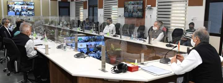 कोरोना वायरस के बढ़ते संक्रमण की रोकथाम हेतु लिए गए महत्वपूर्ण निर्णयों की पालन को लेकर रविवार को सीएम आवास पर वीडियो कॉन्फ्रेंसिंग के माध्यम से कोर ग्रुप एवं संबंधित जिला प्रशासन के साथ मुख्यमंत्री गहलोत ने चर्चा की. सीएम गहलोत ने सभी आठ जिलों के संभागीय आयुक्त, पुलिस कमिश्नर, पुलिस महानिरीक्षक, जिला कलेक्टर, मेडिकल कॉलेज के प्राचार्य, सीएमएचओ तथा निजी अस्पतालॉं में कोरोना रोगियों के बेहतर प्रबंधन के लिए नियुक्त नोडल अधिकारियों से कहा कि वह लोगों का जीवन बचाने के लिए अपनी महत्वपूर्ण जिम्मेदारी को पूरी संवेदनशीलता एवं तत्परता से निभाएं.