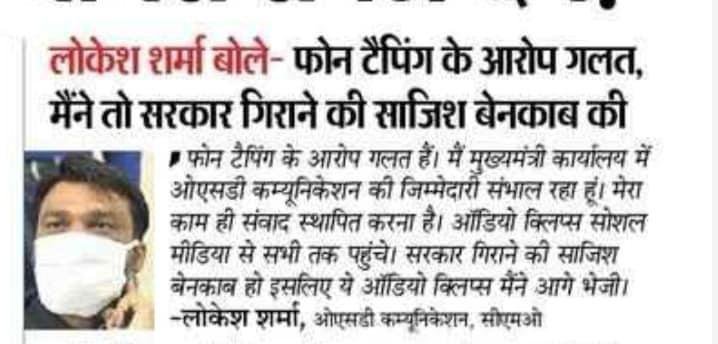 Politalks.News/Rajasthan/PhoneTapping. केंद्रीय मंत्री गजेंद्र सिंह शेखावत द्वारा सीएम अशोक गहलोत के ओएसडी लोकेश शर्मा और कुछ पुलिस अधिकारियों पर एफआईआर दर्ज करवाने के बाद से प्रदेश की सियासत अचानक से गरमा गई है. वहीं फ़ोन टैपिंग मामले में अपने ऊपर लगे आरोपों पर बोलते हुए सीएम गहलोत के OSD लोकेश शर्मा ने कहा कि, 'फ़ोन टैपिंग के आरोप गलत हैं, मैं मुख्यमंत्री कार्यालय में ओएसडी कम्युनिकेशन की जिम्मेदारी संभाल रहे हूं और मेरा काम ही संवाद स्थापित करना है. उक्त ऑडियो टेप सोशल मीडिया के माध्यम से सभी तक पहुंचे और सरकार गिराने की साजिश बेनकाब हो इसलिए ये ऑडियो क्लिप्स मैंने आगे भेजीं."