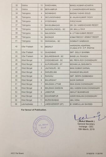 लोकसभा चुनावों के लिए कांग्रेस ने 56 उम्मीदवारों की पांचवी सूची जारी की है. इसमें आंध्रप्रदेश से 22, असम से 5, उड़ीसा से 6, तेलंगाना से 8, उत्तर प्रदेश से 3, पश्चिम बंगाल से 11 और लक्ष्यद्वीप से एक उम्मीदवार का नाम शामिल है. इन 56 नामों को मिलाकर कांग्रेस अब तक 137 उम्मीदवारों का एलान कर चुकी है.