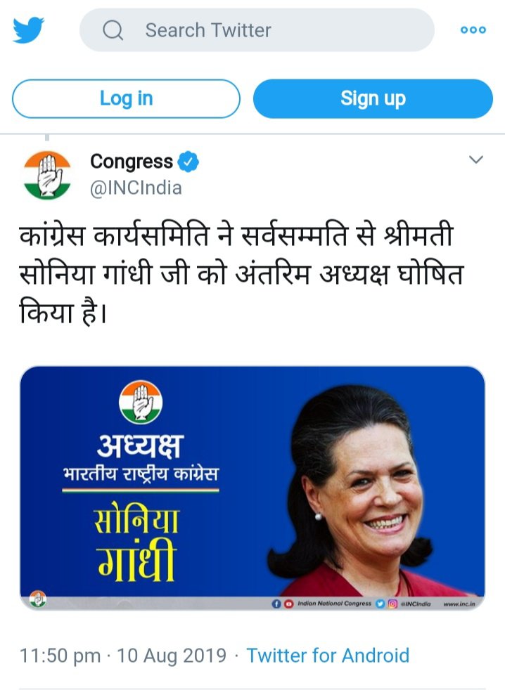 दूसरा, कार्यसमिति ने कांग्रेस के सभी प्रदेश नेताओं के विचार जाने और प्रस्ताव पारित किया कि सभी की इच्छा है कि राहुल अपने पद पर बने रहें. राहुल गांधी को इस्तीफ़ा वापिस लेने के लिए अपील की गई जिसे उन्होंने ठुकरा दिया और कहा कि ज़िम्मेदारी की कड़ी की शुरुआत उनसे होनी चाहिए. इसके बाद सर्वसम्मति से सोनिया गांधी से अपील की गई कि वो पार्टी का कार्यभार संभालें और उन्हें तब तक के लिए पार्टी का अंतरिम अध्यक्ष चुना गया है जब तक एक पूर्णकालिक अध्यक्ष का चुनाव नहीं हो जाता.