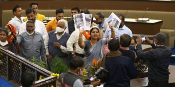 Politalks.News/Rajasthan. देशभर में शिक्षा नगरी के नाम से मशहूर कोटा में लोकतंत्र उस समय शर्मसार हो गया जब कोटा उत्तर नगर निगम की साधारण सभा की बजट बैठक में हुए हंगामें के दौरान कांग्रेस की एक महिला वार्ड पार्षद ने भाजपा की वरिष्ठ वार्ड पार्षद संतोष बैरवा को सदन के सामने थप्पड़ जड़ दिया. इस पर गुस्साई संतोष बैरवा ने भी महापौर डाइस के सामने लगे गमले में से पौधा निकाला और कांग्रेस पार्षदों की तरफ फेंक दिया जो कांग्रेस की अन्य महिला पार्षद जमनाबाई की सीट पर जा गिरा. इसके बाद दोनों पक्ष आमने- सामने हो गए और हंगामा बढ़ गया. करीब 20 मिनिट तक चले हंगामें के बाद महापौर मंजू मेहरा ने बैठक खत्म कर दी. बाद में भाजपा पार्षदों ने कोटा आईजी रवि दत्त गौड से शिकायत करके कांग्रेस पार्षदों के खिलाफ मुकदमा दर्ज करने की मांग की.