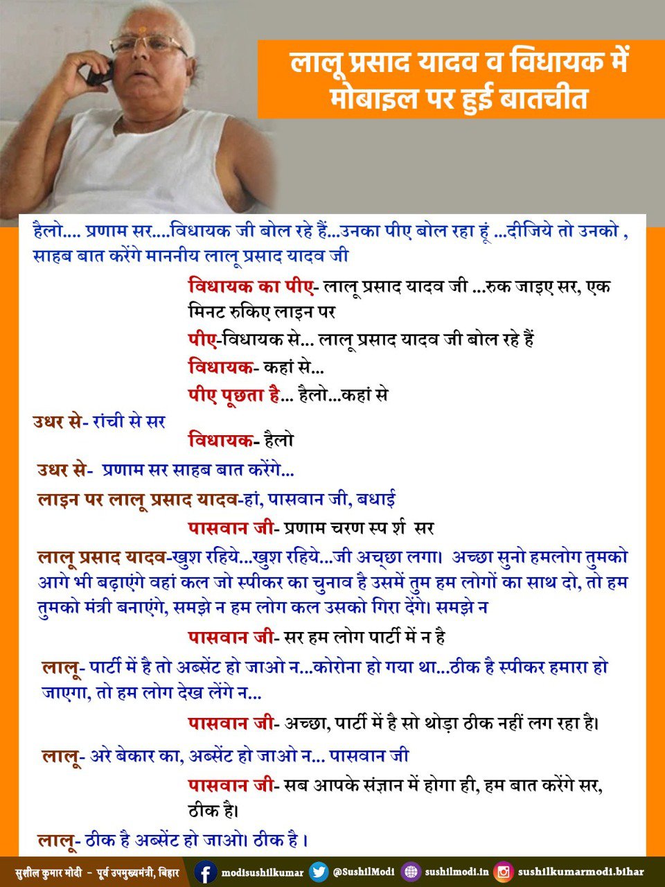 Politalks.News/Bihar/LaluYadav. बिहार में विधानसभा में स्पीकर पद के चुनाव के लिए आरजेडी सुप्रीमो लालू यादव (Lalu Prasad Yadav) द्वारा भाजपा विधायक को आरजेडी का साथ देने और बदले में मंत्री पद दीए जाने सम्बन्धी कथित तौर पर फोन करने को लेकर मचा सियासी बवाल मच गया है. इस सियासी बवाल के बाद भाजपा ने लालू यादव को वापस कोटवार जेल भेजने की मांग की है. इसके साथ ही अब भाजपा इस मामले को लेकर रांची हाईकोर्ट में पीआईएल भी दाखिल करेगी. लालू चारा घोटाले में रांची जेल में सजा काट रहे रहे हैं. बिहार भाजपा के अध्यक्ष संजय जायवाल ने कहा कि लालू के फोन मामले में भाजपा रांची हाई कोर्ट में पीआईएल दाखिल करेगी. वहीं भाजपा नेता नीरज कुमार बबलू ने लालू को तुरंत ही तिहाड़ जेल भेजने की मांग करते हुए पूरे मामले की सीबीआई जांच किए जाने की मांग कर दी है. बता दें, बिहार में चुनावी सरगर्मियां थमने के बाद एकाएक लालू-ललन के सामने आए एक ऑडियो टेप ने सियासत में एक बार फिर उफान ला दिया है. बीजेपी नेता ललन पासवान ने प्रदेश के पूर्व सीएम और राजद प्रमुख लालू प्रसाद यादव पर फोन के जरिए एनडीए सरकार गिराने की कोशिश करने, साथ ही इस एवज में महागठबंधन सरकार में मंत्री पद का ऑफर देने की बात कही है. एक आॅडियो क्लिप के आधार पर पासवान ने दावा किया है कि लालू यादव ने उन्‍हें जेल से फोन कर यह ऑफर दिया. ललन पासवान ने ऑफर ठुकराने की बात भी कही है. हालांकि, आवाज लालू प्रसाद यादव की है या नहीं, यह ऑडियो सही है या नहीं, इसकी पुष्टि नहीं हो सकी है. इधर, पूर्व डिप्टी सीएम सुशील कुमार मोदी ने ललन और लालू के बीच कथित तौर पर हुई बातचीत के आॅडियो टेप को अपने ट्वीटर अकांउट पर शेयर किया. सुशील मोदी ने एक मोबाइल नंबर पर भी शेयर किया है जिस पर उन्होंने बात कर लालू को ये सब नहीं करने का भी दावा किया है. भागलपुर की पीरपैंती सीट से चुनकर आए बीजेपी विधायक ललन पासवान ने कहा, 'लालू का फोन आया था तो मेरे पीए ने फोन उठाया. हमने उन्‍हें चरण स्‍पर्श कहा. मुझे लगा कि बधाई के लिए फोन किया है लेकिन वो कहने लगे कि स्पीकर को गिराना है तत्काल गिराना है. हमने ऐसा करने से मना कर दिया.' ललन पासवान के मुताबिक जेल में बंद लालू यादव ने उनसे कहा कि स्पीकर के चुनाव में वह महागठबंधन का साथ दें और इसके बदले में उन्हें राजद आगे बढ़ाएगा. जब उन्‍होंने खुद के भाजपा का सदस्य होने की बात कही तो लालू यादव ने उनसे कोरोना का बहाना बनाकर सदन में अनुपस्थित होने की बात कही. यह भी पढ़ें: जोरदार हंगामे के बीच बिहार विस में स्पीकर बने विजय सिन्हा, सदन में लगे जय श्रीराम के नारे ललन पासवान का ये भी कहना है कि संयोग से उन्‍हें लालू यादव का फोन तब आया जब वह पूर्व उपमुख्‍यमंत्री सुशील मोदी के आवास पर बैठे थे. इसके बाद विधायक ने फोन के बारे में पार्टी क