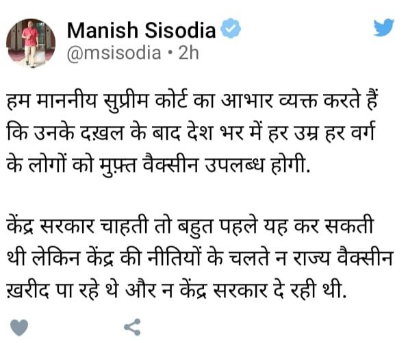 फ्री टीका पर कांग्रेस सहित विपक्ष की टिप्पणी- मोदी पहले ही मान लेते अब सुप्रीम कोर्ट के दबाव से बनी बात