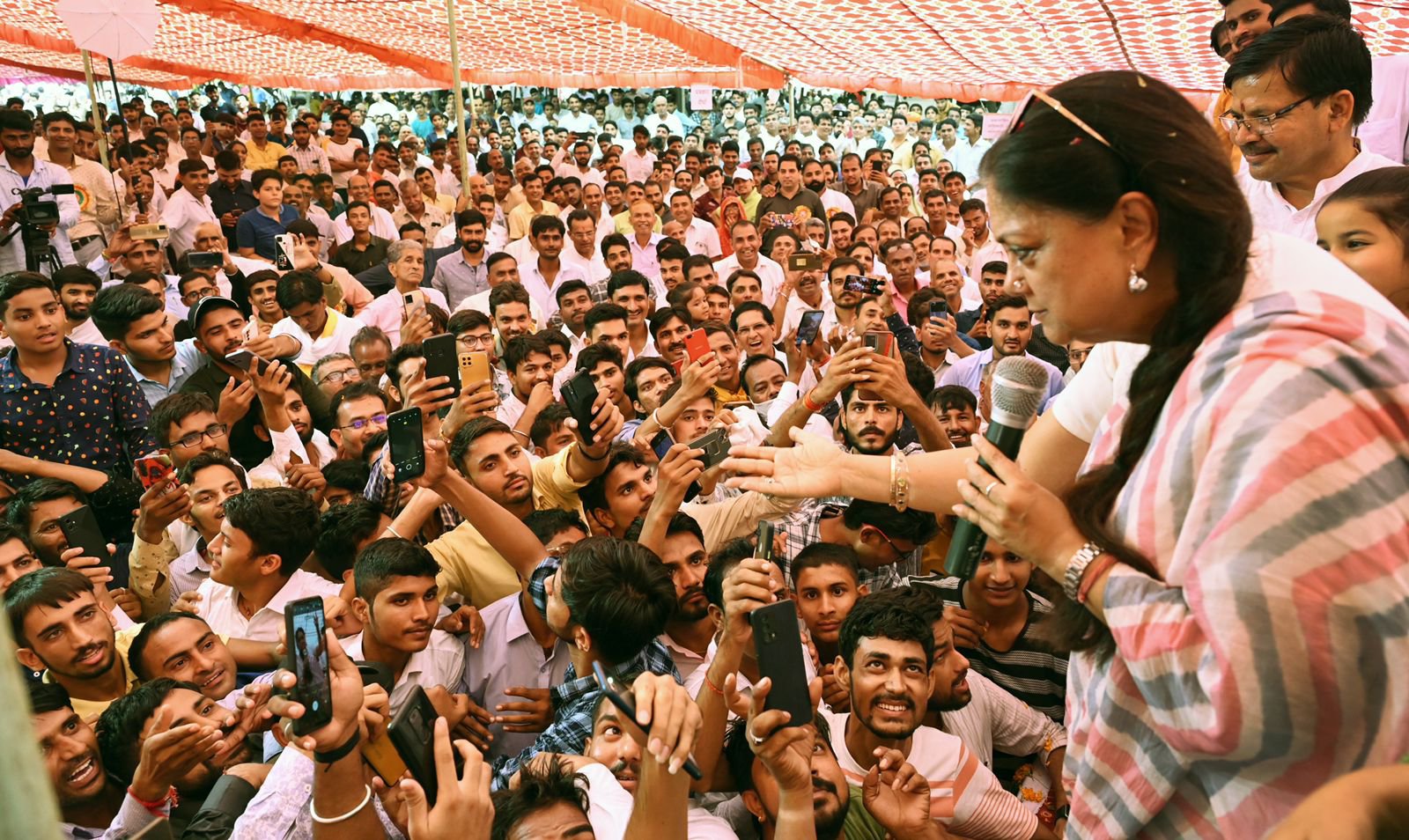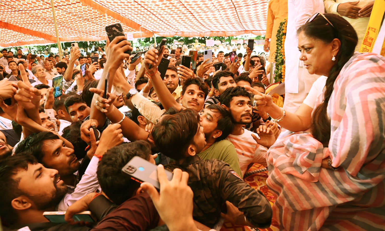 युवाओं में मैडम राजे को देखने सुनने का जबरदस्त क्रेज देखने को मिला. कार्यक्रम में पहुंचे सैंकड़ों युवाओं ने लगातार 'कहो दिल से वसुन्धरा फिर से’ के जमकर नारे लगाए, यहां तक कि खुद पूर्व सीएम मैडम राजे को नारे लगाने वाले युवाओं को शांत करवाना पड़ा. वहीं इस दौरान मैडम राजे के साथ सेल्फी लेने के लिए युवाओं में जबरदस्त होड़ मची रही.