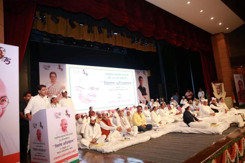 गांधी जयंती पर कांग्रेस अधिवेशन में फिर दिखी गहलोत-पायलट के बीच की खींचतान