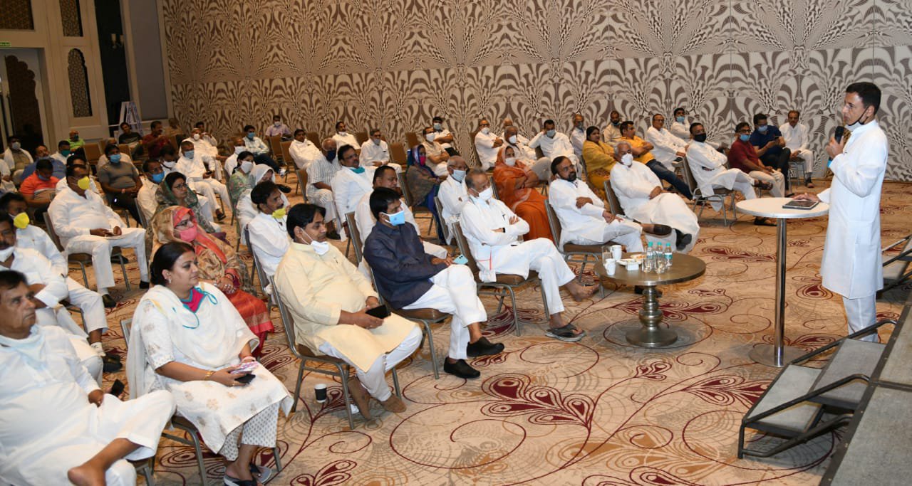 शनिवार दोपहर मुख्यमंत्री अशोक गहलोत की अध्यक्षता में करीब तीन घंटे चली विधायकों की इस कार्यशाला में एआईसीसी महासचिव केसी वेणुगोपाल, एआईसीसी महासचिव एवं राजस्थान प्रभारी अविनाश पांडे, उपमुख्यमंत्री व पीसीसी चीफ सचिन पायलट, पर्यवेक्षक एवं कांग्रेस के राष्ट्रीय चीफ प्रवक्ता रणदीप सिंह सुरजेवाला, सांसद दीपेंद्र सिंह हुड्डा, सांसद राजीव सातव, सांसद मणिकम टैगोर और एआईसीसी से आए कांग्रेस के नेता मौजूद रहे.