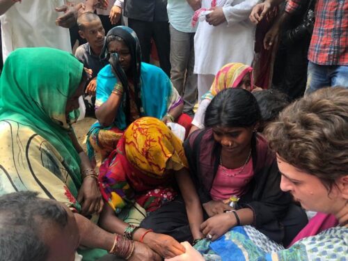 सोनभद्र नरसंहार: पीड़ित परिजनों से मिली प्रियंका गांधी, फिर धरने पर बैठी