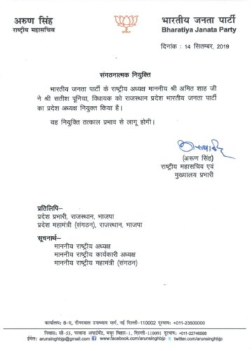 आगे पूनिया बोले- कांग्रेस द्वारा कर्जमाफी की चुनावी घोषणा से ठगे गए किसान आत्महत्या कर रहे है, रोजगार का इंतजार करता प्रदेश का नौजवान निराश है, विकास के काम ठप्प है, नई भर्तियां निकल नहीं रही है. सरकार के दो पाॅवर सेंटर (गहलोत-पायलट) आपस की लड़ाई में उलझे हैं. मुख्यमंत्री का प्राथमिक काम अपने प्रदेश के लोगों को सुशासन देना है लेकिन उनका सारा समय अपनी कुर्सी बचाने के लिए दिल्ली दरबार में गुजरता है. अपनी इस जिम्मेदारी से पूरी तरह बेपरवाह गहलोत प्रधानमंत्री नरेंद्र मोदी पर अनर्गल बयानबाजी कर रहे है.