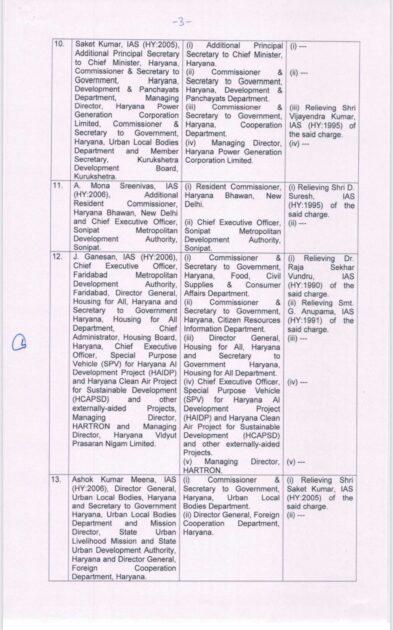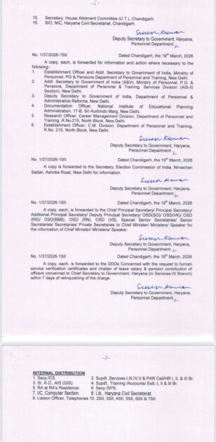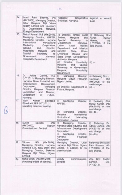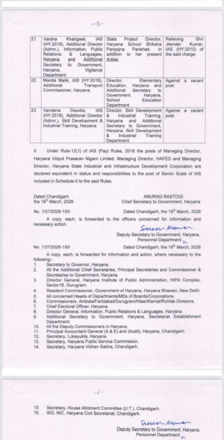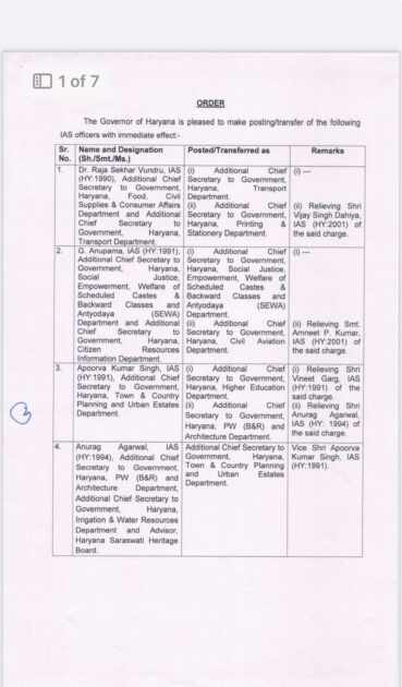 राज्यसभा चुनाव के दो दिन बाद हरियाणा सरकार ने प्रदेश में किया बड़ा प्रशासनिक फेरबदल, प्रदेश में 23 आईएएस अफसरों का हुआ ट्रांसफर, कई बड़े अफसरों के विभागों को बदला गया, आईएएस अफसर राजा शेखर वुंडरू का भी नाम है शामिल, देखें लिस्ट