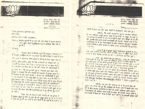 Politalks.News/Rajasthan. प्रदेश में कांग्रेस के साथ बीजेपी के अंदर की जबरदस्त गुटबाजी किसी से छिपी नहीं है. प्रदेश भाजपा की इसी खींचतान के चलते प्रदेशाध्यक्ष सतीश पूनियां के एक 22 साल पुराने एक खत ने सियासी भूचाल ला दिया है. जुलाई, 1999 में लिखा गया यह खत सतीश पूनियां ने भारतीय जनता युवा मोर्चा के प्रदेशाध्यक्ष पद से इस्तीफा देने के समय तत्कालीन प्रदेशाध्यक्ष गुलाबचंद कटारिया को लिखा था. तीन पेज के इस लम्बे खत में सतीश पूनियां लोकसभा व विधानसभा में टिकट नहीं देने के कारण उस समय पार्टी के प्रति अपनी नाराजगी जाहिर करते हुए बीजेपी के कई बड़े दिग्गजों पर जमकर निशाना साधा था.