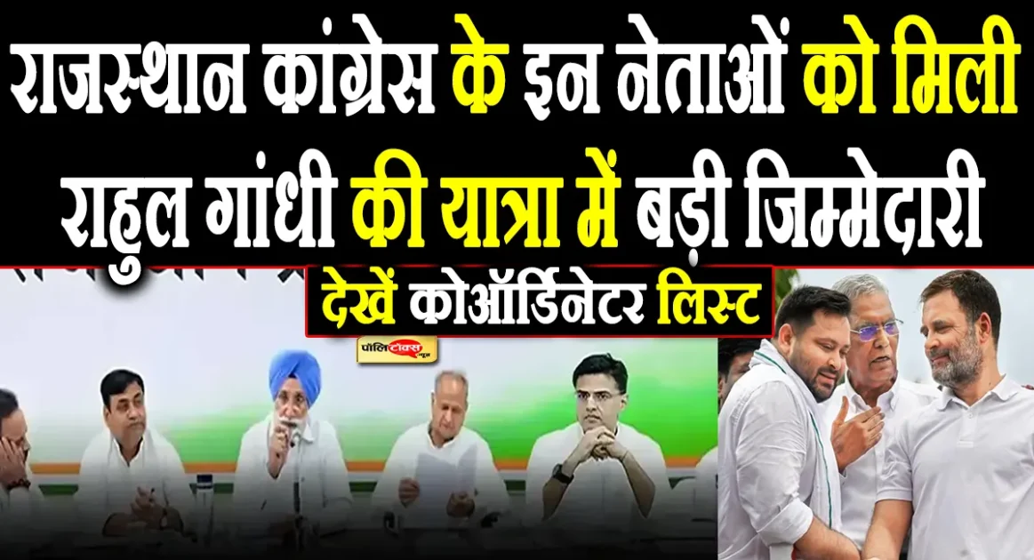 बिहार विधानसभा चुनाव से जुडी बड़ी खबर, 17 अगस्त से राहुल गांधी बिहार में करेंगे वोट अधिकार यात्रा, रोहतास से शुरू हो कर पटना में 1 सितम्बर को यात्रा का होगा समापन, 25 जिलों से गुजरेगी राहुल गांधी की यात्रा, राहुल गांधी के साथ तेजस्वी यादव भी रहेंगे मौजूद, वही राहुल गांधी की वोट अधिकार यात्रा के लिए कांग्रेस ने नियुक्त किए यात्रा कोऑर्डिनेटर, लिस्ट में राजस्थान कांग्रेस के कई नेताओं के नाम भी है शामिल, देखें पूरी लिस्ट